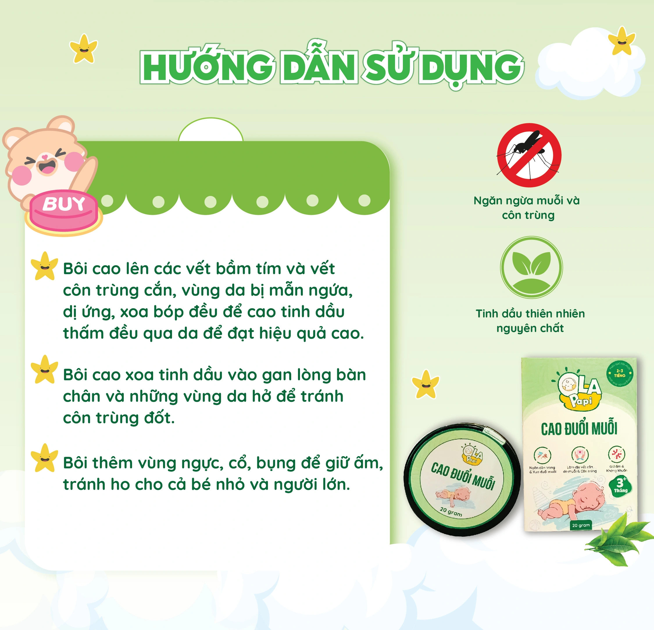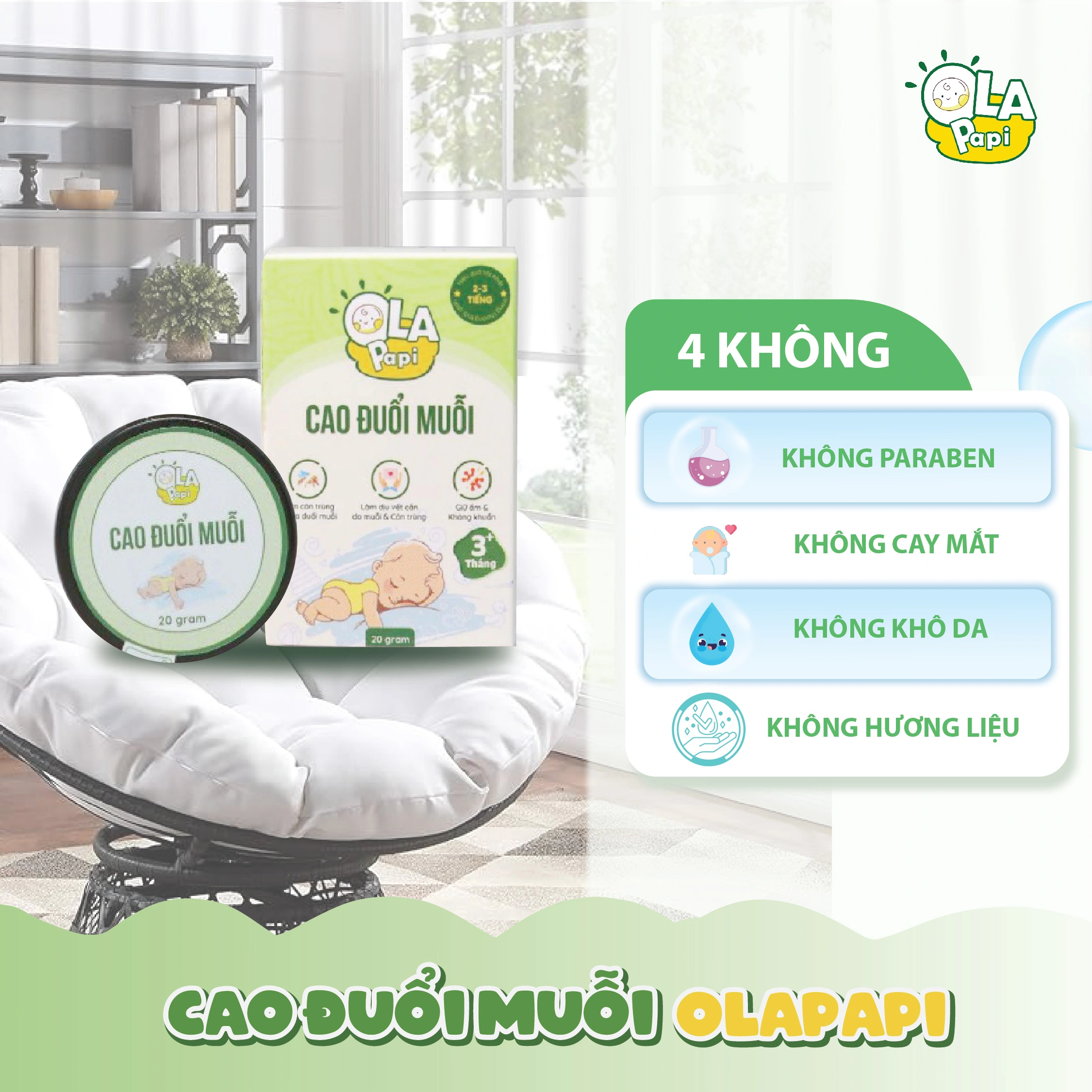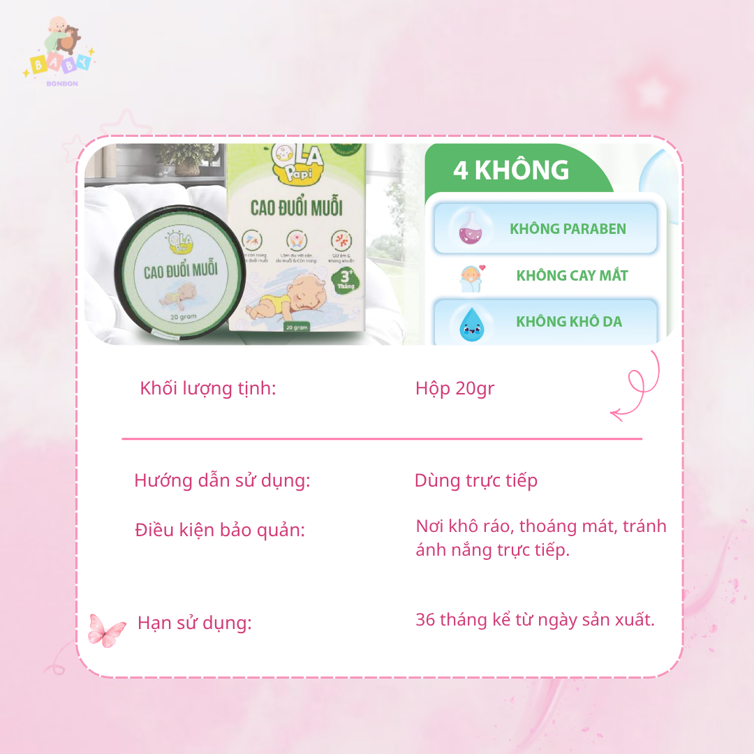 Cao Đuổi Muỗi Ola Papi 20g – Thảo Dược Thiên Nhiên An Toàn Cho Bé