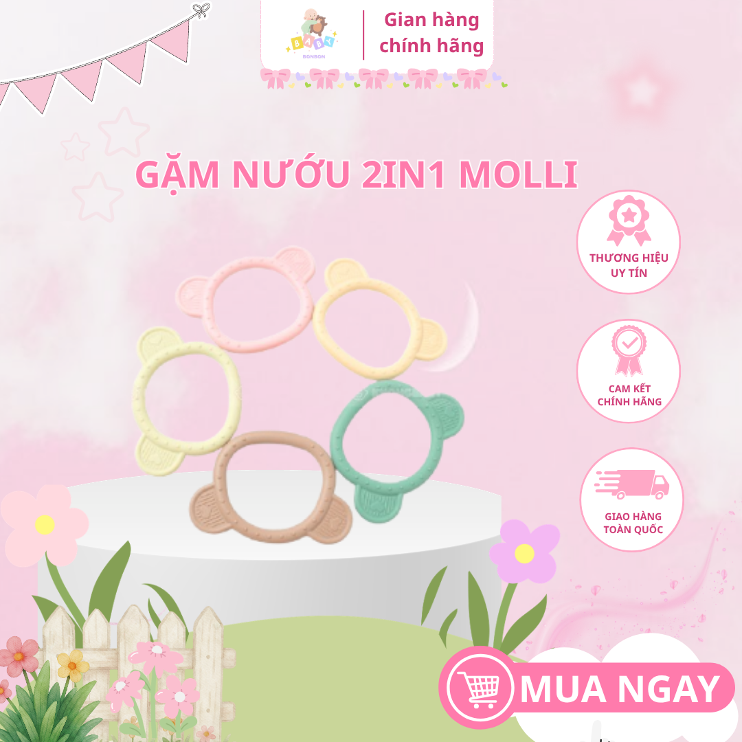 Trong giai đoạn mọc răng, nhiều bé thường cảm thấy ngứa lợi và khó chịu nên hay cắn hoặc nhai đồ vật. Gặm nướu silicon Molli là sản phẩm hỗ trợ hiệu quả giúp bé giảm cảm giác khó chịu trong thời kỳ này. Với chất liệu silicon mềm mại, gặm nướu silicon Molli giúp massage nướu nhẹ nhàng và mang lại cảm giác dễ chịu cho bé. Ngoài ra, thiết kế nhỏ gọn còn giúp bé dễ dàng cầm nắm, từ đó hỗ trợ phát triển kỹ năng vận động và khám phá thế giới xung quanh.