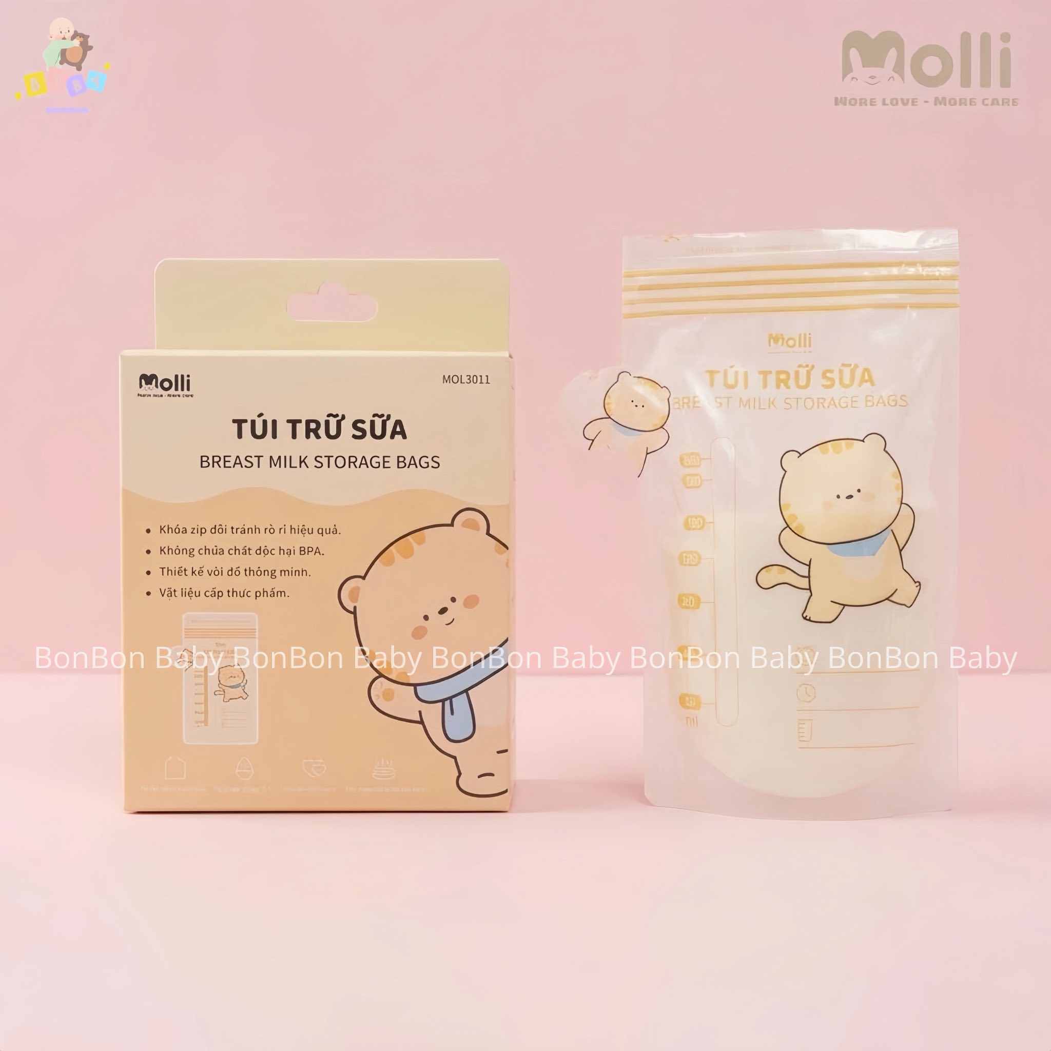 Trong quá trình nuôi con bằng sữa mẹ, việc trữ sữa giúp mẹ chủ động hơn về thời gian và đảm bảo bé luôn có nguồn dinh dưỡng cần thiết. Túi trữ sữa Molli được thiết kế tiện lợi, dễ sử dụng và phù hợp với nhu cầu trữ sữa hằng ngày của mẹ. Nhờ thiết kế chắc chắn và an toàn, túi trữ sữa Molli giúp bảo quản sữa mẹ tốt hơn, đồng thời giúp mẹ dễ dàng mang theo khi cần di chuyển hoặc đi làm