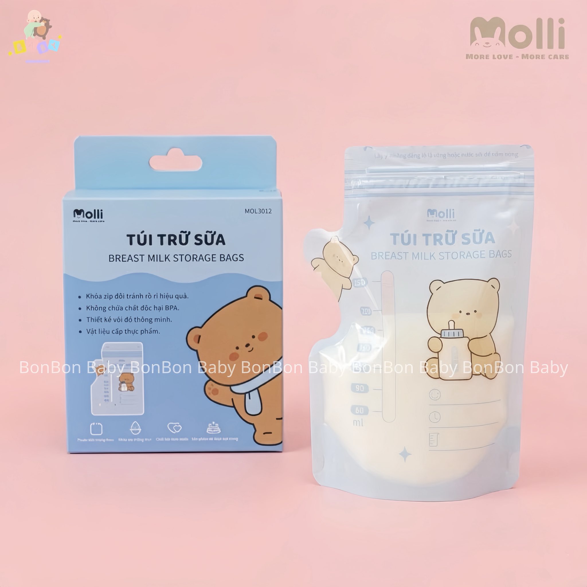 Túi trữ sữa 150ml ( 30PCS / Hộp ) MOL3010 - Molli - More love More Care